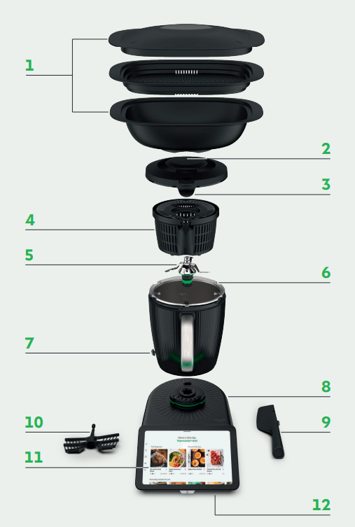 - Platzsparendes Design, das über 20 Küchengeräte ersetzt.